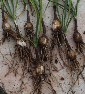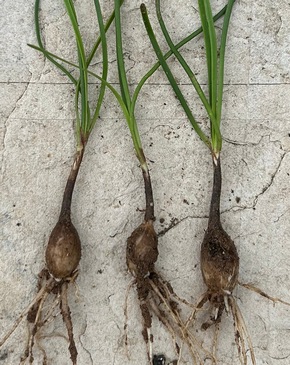 the soil – making it easy to get both the bulbs and the beard of roots below with a