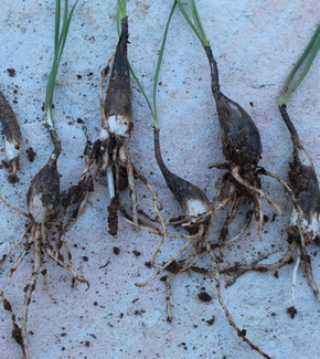 the lower bulb as well as its attachment to the lower leaves, and the lower leaves themselves. Take
