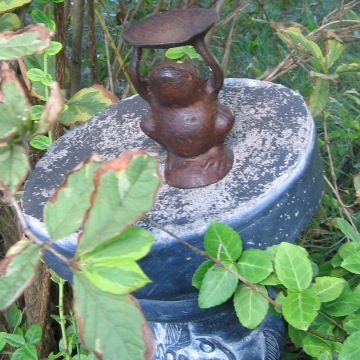 placed him on the pedestal of our now-defunct concrete bird bath.