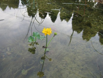 November 18, 2006. The plants in the pond and bog have been closing up shop for the cold season in recent weeks - all but the string algae, who are taking advantage of the influx of nutrients from falling leaves, and this one persistent marsh marigold, looking fresh as can be amid its fading friends. Comment on this journal entry |