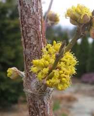 March 26, 2006. Ah, the garden's made progress since last week. More green, and just a few more blossoms. Such as this Cornelian cherry, blooming on its intricately patterned bare wood. It's a good thing we grow it in our front lane, or we might miss its show, so early in spring. Comment on this journal entry |