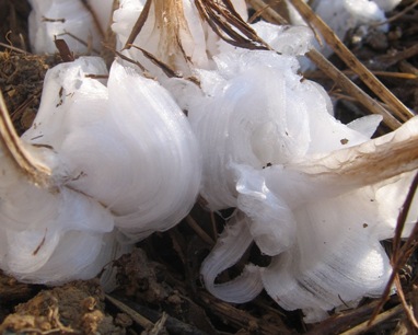 December 05, 2006. I'd seen them before, in magazine articles and web pages, but today, I could marvel at them before my own eyes: frost flowers, ice castles, or whatever you prefer to call them. We had a good freeze last night (down to about 20°F), with cold persisting into the sunny morning. Result: thin bands of ice extruded from the stems of an overwintering perennial (in this case, hardy spurflower) curve and curl around, to form intricate structures. Just to make a case for strolling through the garden, even when the flowers have departed. Comment on this journal entry |