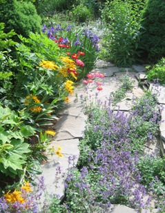 May 20, 2006. Whacking back the weeds in our Lane garden, I looked up, and realized that, in my efforts to tidy up, I hadn't actually noticed the cascade of colorful flowers right in front of me - Helenium hoopesii, painted daisy and Siberian iris providing the primary colors, augmented by a lavender haze of catmint sprawling across the walkway. Our garden's appearance is seldom "neat", but there are nearly always flowers to be found among the slightly out of control plantings. And when things go just right, they combine into a pretty picture like the one here! Comment on this journal entry |
