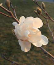 March 30, 2006. Every year we wait for it impatiently, and it still takes us by surprise - the first star magnolia to open. Pure white, voluptuous, and surrounded by plenty of its bud sisters. The show will be over soon - so we'd better pay attention while it lasts.