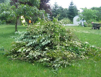 June 04, 2006. Yesterday I engaged in combat with the neighbors' privet hedge. The hedge is useful in providing a backdrop to the long narrow bed along our driveway, but has the unfortunate tendency to quickly grow into the very space of that flower border. At least a couple times a year, I hack it back into its allotted space, giving the flowers breathing room and access to sunlight. The picture here shows the spoils of battle with just a part of the hedge. The chipper/shredder will be thankful. Comment on this journal entry |