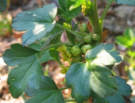 April 11, 2006. For the first time since planting this currant in our back-yard orchard, it's blooming - so I'm looking forward to its fruit. I don't know what variety it is, though - it came to us as red currant (Ribes rubrum), but doesn't resemble photos I've found of that species. I'll figure it out one of these days... Comment on this journal entry |