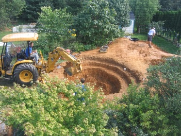 I'm blocking the view of the waterfall - sorry! | October 12, 2006. The past few weeks have been taken up by an ambitious project - taken on not by myself but by professionals who actually (claim to) know what they're doing: a large, naturally filtered pond with waterfall. We won't get the full effect until sometime next year, when the bog filter plantings take off and we work more garden plants into the overall area - but we're already enjoying the results. My father wouldn't miss the project, so he flew all the way over from the Netherlands to witness its completion. Okay, maybe the grandkids had something to do with it as well... You can read more about the project on my new big pond page. Comment on this journal entry |