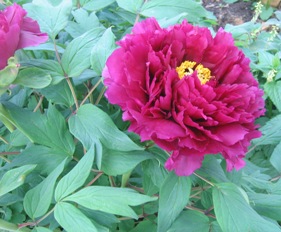 May 15, 2007. At long last, our tree peony is blooming! For weeks the buds were growing, for over a week the petal coloration was showing tantalizingly through the green - but finally, the flower is open. Perhaps a bit of a disappointment - the flower is not that of 'Shima Nishiki', the red-and-white variety shown on the label when I purchased the plant. But I'm not complaining too much - it's still a glorious plant. We're looking forward to seeing it grow and prosper in our garden. Comment on this journal entry |