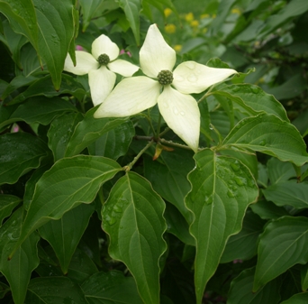 May 27, 2009. We returned from about two weeks vacation yesterday - it rained all morning on our day of departure, and it was drizzling when we returned. According to our local sources, it rained quite a bit in between too, which would explain why the grass had grown to a verdantly billowing meadow, and the rest of the garden exploded into a rich lush growth. I managed to mow the lawn today (painfully slowly), and also took plenty of pictures of the new blooms. Some of which belonged to the kousa dogwood pictured here - after many years in our garden, following a rescue from the torture of a discount nursery and attacks by rabbits in subsequent years, it finally did its thing. Still more of a squat shrub than a tree, but I'll be working on that later this year. Comment on this journal entry |