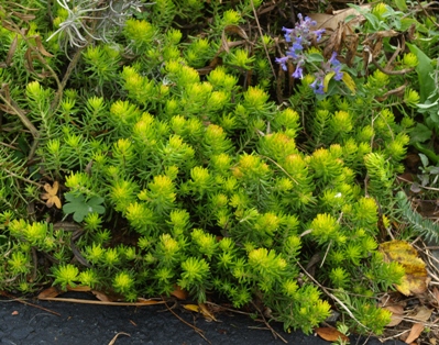 | October 27, 2009. When the autumn sun hits it just right, this Sedum 'Angelina' is just about the brightest thing in the garden. It's nice year-round, but somehow it really shines this time of year. It helps that it's planted in our front rock garden, right in the corner of the driveway and the front walk, where you can't help but notice it every time you walk by. Visitor comments