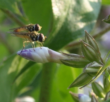 June 28, 2009. Yeah, it's that time of year again when insect sightings get to be just about as interesting as new plants coming into bloom. Not that these little flies are anything out of the ordinary - but I was still pleasantly surprised to find them as I set up my camera to take a picture of the interestingly twisted buds of Phlox 'Natascha'. The more interesting insect find was yesterday, but unfortunately the fierce-looking creature (probably an ambush bug of sorts) flew away before I properly trained my camera on it. Comment on this journal entry |