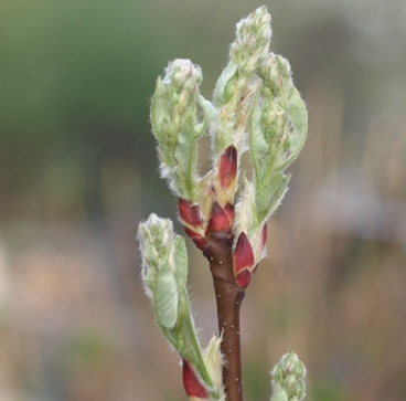 So why, with the cherries, apricot, flowering pear, peaches, assorted hellebores and daffodils, a few tulips, violets, and rock cress in bloom, did I choose to accompany this entry by a picture of fuzzy new growth on a Western serviceberry? Because I'm always sure to notice all those bright blooms, but I still like to be surprised by things I haven't ever paid such close attention to!Visitor comments