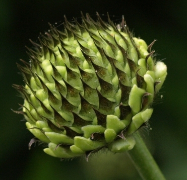 June 11, 2010. Innit pretty? This beautifully arranged bud belongs to Cephalaria gigantea (giant scalehead). Its big floppy creamy yellow scabious flowers are fine too, but the bud really caught my eye today. I'm establishing the plant in our newly created curve garden, now that the location its ancestors used to inhabit has become too shady for its liking. Our second-year plants are hardly "giant", topping out at about three foot right now - but I expect they will reach their tall upright stature by next year. Comment on this journal entry |