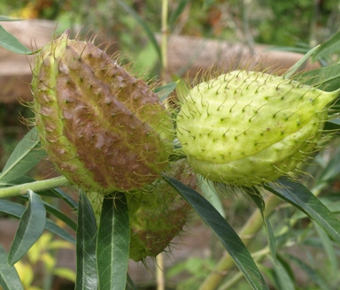 | October 30, 2010. OK, so I've been taking a physical and mental break from gardening. The drought and its after-effects on the garden depressed my garden spirits so much that I preferred to be engaged in other activities (several of which have recently ramped up - I now enjoy seeing gardens pass by as I zip along on a road bike). But by now, the garden has moved on, fairly happily engaged in the things it does in Autumn after water levels were replenished by some big rainstorms. So I guess I should return my attention to horticulture as well. I'm afraid my seed collecting suffered from the inactivity, but there are still plenty of seeds to collect (and more have yet to ripen). On a walk through the garden this afternoon, it struck me how many blues I encountered. Fall is known for its fiery hues, and sure enough there were the mums, some remaining sun/coneflower types, and hot pink spikes on Bistorta 'Firetail' - but they were offset by the deep blue of Carmichael's monkshood, the clearer blues of several campanulas, a nice display of Rabdosia longituba, vibrant blue blooms on a hybrid salvia, and even some asters in the blue spectrum. And then of course there's all the seedheads. The oddball ones pictured here are from pufferfish milkweed – I've been watching them for a few weeks, as the've grown from grassy green soft-spiny balls to today's pale-green to purple elephantine contraptions. I'm not sure if I'll ever be able to successfully integrate the plant into a planting scheme, but it's certainly contributing to keeping the garden interesting in the final weeks of the garden season - before the first hard freeze shuts things down for the year. Visitor comments