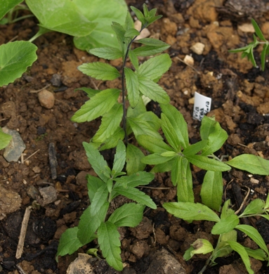 May 02, 2010. It feels good to sit here, showered and in clean clothes, a little past 11pm on the Sunday after Plant Sale #10. As in previous years it's been a hectic few days. I always take a day or two off before the sale, just to get myself organized for the madness that ensues around eight o'clock on Saturday morning (Amy counted 39 people in our two-car garage at 8:10!). It was fun as always, with plenty of familiar faces, and somewhat predictable favorite selections (although there are always surprises: plants that used to sell out didn't, and some that were not as popular in previous years went quickly this time around). It seems like the whole affair is over earlier every year - this time, the crowds had died down by 9:30, replaced by a gentler trickle of customers until about 11, when it was just about completely over. Which suits me fine, because now I have the usual unsold plants to deal with: do they go into our own garden areas, or into nursery or sale plot gardens? How to organize the wild variety of pots that were left behind by recycling-minded plant lovers? And, not least, the ongoing task of getting this year's seedlings into the ground. The photo here shows some sturdy seedlings of Salvia azurea, a species I haven't previously grown. They'll live in the nursery area for a year; hopefully, they'll survive winter, so that next spring they can find permanent places in our garden (with perhaps a few left over for the sale - after all, I'm always looking to update my assortment!) Comment on this journal entry |