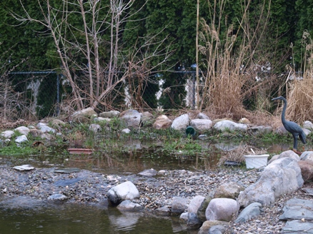 While stage one was completed using the brand new rubber boots my parents gave me for Christmas, stage two involved my T-shirt and shorts as protective gear, and a good deal more trepidation: my outfit served as a make-shift wet-suit, to keep me at least somewhat warm in the still chilly water, as I retrieved scoop after scoop of algae and decaying plant matter from the bottom of the main pond. About a half hour was as much as I could take (a hot shower felt nice, but didn't stop the shivers). So there's plenty more work ahead of me, as I barely scratched the surface of the algae layer. Comment on this journal entry |