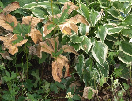 July 11, 2010. I'm finding it hard to work up much motivation to go out into the garden these days. Four weeks of heat and no rain have taken a big toll on most plants. Even with sprinklers and hand-watering efforts, many plants perished or are looking pretty awful right now. The side garden is usually an undulating sea of foliage in various textures at this time of year - but as the photo here shows, many contributors to that sea are looking beat. We finally got a nice rainstorm a couple nights ago - too late to turn the appearance of the garden around, but hopefully in time to save many plants from an even worse fate. At least it's an opportunity to look around for plants that are still looking good, and working more of them into garden areas designed for drought tolerance. Comment on this journal entry |