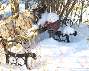 February 07, 2010. Still in the middle of the winter journal lull. Yesterday brought a nice snow storm to our area, dropping 6-8" of powder on our garden. The area in the picture here is part of our side garden, featuring a bench whose slats rotted out some time ago (but which we keep around for general ornamental value), and a gazing globe set aside for the cold season. Not much outdoor gardening going on, though. Since I didn't get around to much garden cleanup this fall, I'll have my work cut out for me once milder weather returns. But that doesn't mean my gardening activities overall are in a lull as well: I'm in the busy season of seed starting, with dozens of varieties already growing under the lights, over a hundred varieties in various stages of anticipated germination, and my usual worries over space under the lights are starting to crop up. I received my seed exchange order from NARGS last week, and expect to see the HPS/MAG order any day now. I'm overwhelmed, but in a most exciting way. Comment on this journal entry |