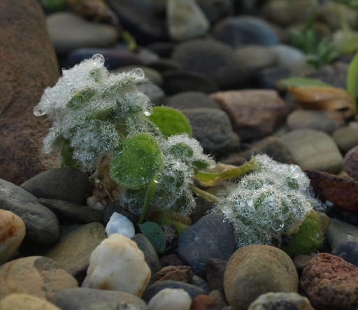 May 25, 2014. The nice thing about growing plants in troughs (especially if you keep those troughs on your back patio table, as I do – much to Amy's dismay) is that they invite up-close inspection almost every day. So you notice your plants in the morning, afternoon, and evening, as they go through the things that plants like to do during their work-a-day life. Take this Arenaria tetraquetra, raised from seed this spring: it looks like an unassuming, hairy little bit of nothing during most of the day, just biding its time till it can burst into bloom next spring (stay tuned for that!). But in the early morning, it exhibits its amazing ability to trap dew from the cool night air – it is literally a soppy mass of tiny droplets captured in the dense hairs covering its leaves. Some of those droplets are coalescing, and will likely fall to the ground before the morning sun burns them off. So my guess is that this is a moisture management strategy on the part of this little sandwort. Impressive, eh? Comment on this journal entry |