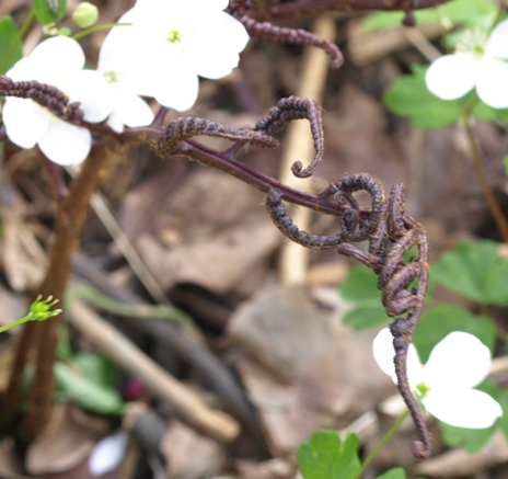 May 04, 2014. Our Japanese painted fern is always a sight to behold as it emerges from a deep hiding place in the soil in mid spring. This year, somehow it struck me as especially ghostly, perhaps because of the contrast with the bright white flowers of false rue anemone. This is either the common variety 'Pictum' or one named 'Regal Red' that we acquired more recently – they are fairly similar, and I've lost track of which is which. In any case, it will soon unfurl its fronds to where the stark lead-black coloration turns to a colorful combination of silvers and blue-greens (and perhaps some red). Comment on this journal entry |