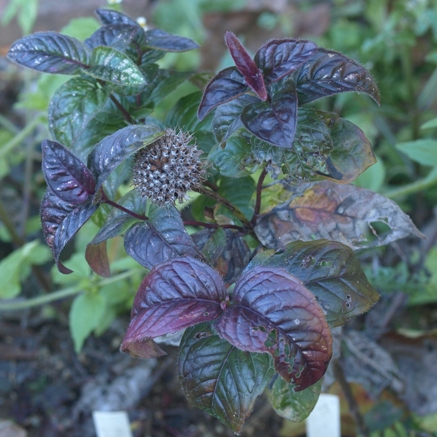 October 19, 2014. There's not all that much left blooming in the garden (unless you count the plumes on ornamental grasses): the knock-out roses are still doing their thing, Sedum sieboldii is in prime form, fall-blooming crocuses are looking nice, and quite a few annuals and late-blooming perennials are soldiering on with some new flowers alongside the more prevalent developing seedheads. But the greater source of color right now is definitely the autumn leaves. Mostly the trees and shrubs (I'm enjoying the flowering dogwood, various viburnums, blackgum, among others) – but when you look a little closer, many of the lower-growing perennials are also very colorful in leaf right now. Take the Eastern beabalm shown here: the shiny leaves gleam in purple splendor, making a nice contrast with the fading seedheads. I should spend more time outside this time of year, but it seems like I don't get around to leisurely walks around the garden very much. When I do, I'm distracted by all the plants that are sporting their ripe seeds, prompting me to run to the garage for a suitable container to collect some into. Those society seed exchanges are expecting their donation shipments any day now... Comment on this journal entry |