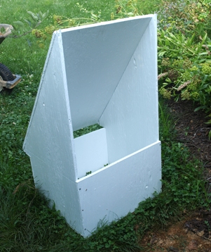 | July 19, 2008. Most gardeners specialize - some like cottage gardens, other prefer rock gardens or formal designs. Likewise, we all have our preferred ways of doing things - whether it's mulching, staking, or new border construction. When it comes to propagation, I have thus far specialized on seed-starting, building lots of experience and preferred methods over the years. But I've neglected the very useful vegetative means of propagating plants. I doubt I'll ever do tissue culture, but I decided I should at least give basic methods of growing from cuttings a try. For years, I've kept a copy of an HPS/MAG newsletter (now available online) that described how to build a Nearing frame, a garden structure especially suitable for starting cuttings outside. Last week I finally got around to cutting up an old sheet of plywood, and painting and assembling the pieces into the structure shown here. It will get partly buried, with the main opening facing North, and rooting media inside. As was the case with seeds, I expect many false starts and failed attempts - but hopefully I'll learn enough about cuttings and such to makes extras of at least a few of my favorite garden denizens. Wish me luck! |